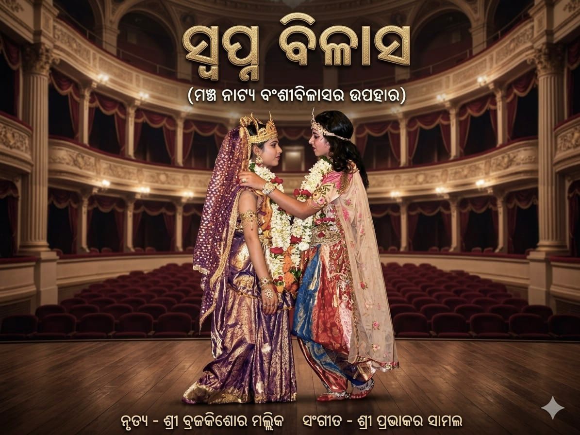 Swapna Bilas is a mesmerizing Odissi production by Bansi Bilash , first presented in 1986 , weaving together the vibrant Hori Leela and the mystical vision of Radharani’s dream foretelling the advent of Chaitanya Mahaprabhu—Sri Krishna imbued with the bhava of Radharani. Rich in spiritual symbolism and expressive storytelling, the production beautifully captures the interplay of devotion, longing, and divine revelation, embodying the lyrical grace and depth of the Odissi tradition. Subsequently, the production toured Vrindavan, where it received the blessings of Vaishnavas, saints, and seers.