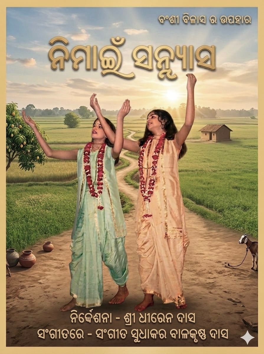 Nimai Sanyas is a powerful Bansi Bilash production from 1986 , created to commemorate 500 years of the birth of Chaitanya Mahaprabhu . Centered on the poignant Sanyas Leela, the production captures the profound moment of renunciation that transformed Nimai into a spiritual luminary. Directed by the legendary theatre maestro Sri Dhiren Dash and set to a deeply evocative musical score by Sangeet Sudhakar Balkrishna Dash, Nimai Sanyas stands as a moving tribute to devotion, sacrifice, and the enduring legacy of divine love.